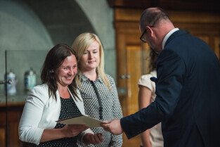 Dwór Artusa w Gdańsku prezydent Paweł Adamowicz wręcza akty nadania stopnia nauczyciela mianowanego 98 pedagogom. W czasie uroczystości nauczyciele złożyli ślubowanie. Nz. Grzegorz Kryger-Wydział Rozwoju Społecznego