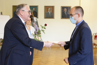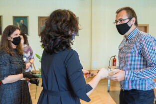 Gdańsk UMG, ul. Nowe Ogrody. Wiceprezydent Piotr Kowalczuk wręcza akty nadania stopnia nauczyciela mianowanego