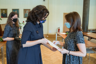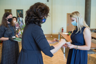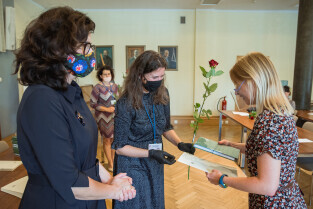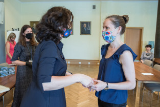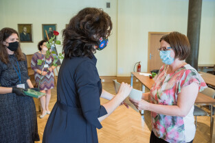 Gdańsk UMG, ul. Nowe Ogrody. Prezydent Aleksandra Dulkiewicz wręcza akty nadania stopnia nauczyciela mianowanego