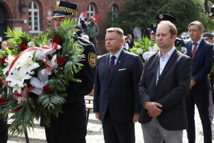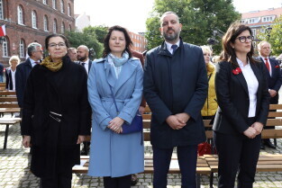 Uroczystość na Placu Obrońców Poczty Polskiej.