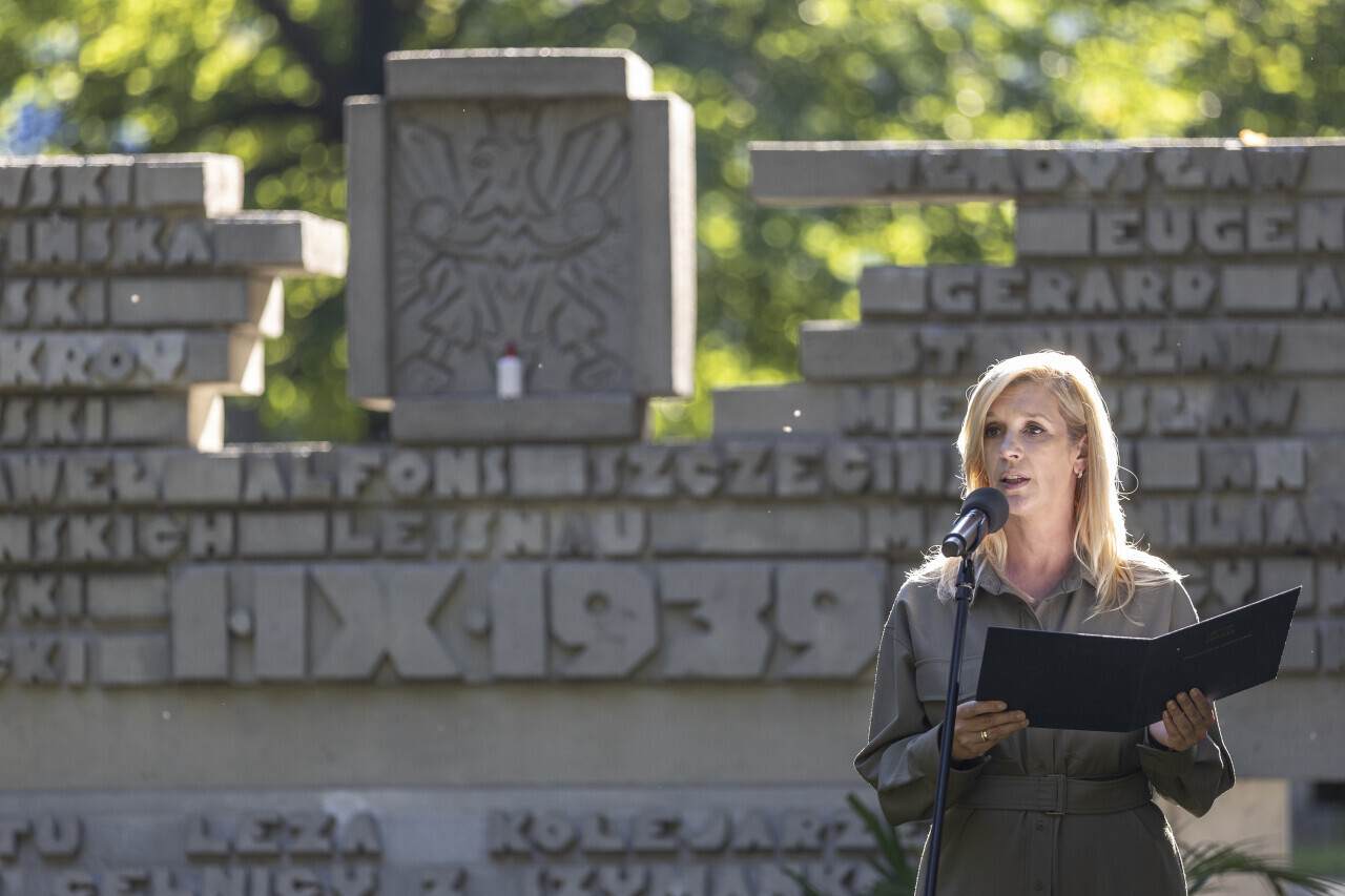 Gdańsk. Obchody 86. rocznicy wybuchu II wojny światowej. Nz. Uroczystość na cmentarzu Ofiar Terroru Hitlerowskiego na Zaspie.