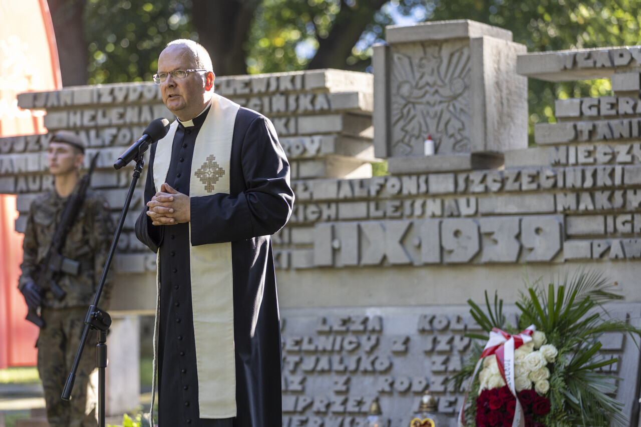 Gdańsk. Obchody 86. rocznicy wybuchu II wojny światowej. Nz. Uroczystość na cmentarzu Ofiar Terroru Hitlerowskiego na Zaspie.