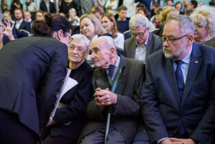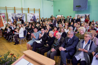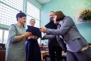 Gdańsk, ul. Jagiellońska. Uroczystość nadania imienia Pawła Adamowicza szkole specjalnej. Nz. (od lewej) rodzice Pawła Adamowicza, brat Piotr Adamowicz, radna Teresa Wasilewska