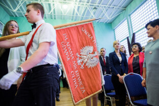 Gdańsk, ul. Jagiellońska. Uroczystość nadania imienia Pawła Adamowicza szkole specjalnej