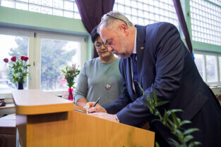Gdańsk, ul. Jagiellońska. Uroczystość nadania imienia Pawła Adamowicza szkole specjalnej. Nz. Piotr Adamowicz