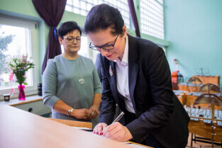 Gdańsk, ul. Jagiellońska. Uroczystość nadania imienia Pawła Adamowicza szkole specjalnej. Nz. Prezydent Gdańska Aleksandra Dulkiewicz