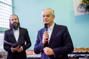 Gdańsk, ul. Jagiellońska. Uroczystość nadania imienia Pawła Adamowicza szkole specjalnej. Nz. Prezydent Pracodawców Zbigniew Canowiecki