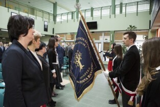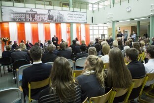 Gdańsk Osowa. Uroczystość nadania imienia Stefana Banacha Gimnazjum nr 33 i XXIV Liceum Ogólnokształcącemu, czyli Zespołowi Szkół Ogólnokształcących nr 2