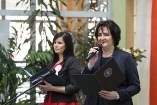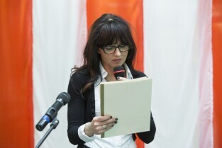 Gdańsk Osowa. Uroczystość nadania imienia Stefana Banacha Gimnazjum nr 33 i XXIV Liceum Ogólnokształcącemu, czyli Zespołowi Szkół Ogólnokształcących nr 2. Nz. Radna Miasta Gdańska Żaneta Geryk