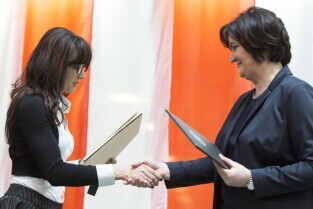 Gdańsk Osowa. Uroczystość nadania imienia Stefana Banacha Gimnazjum nr 33 i XXIV Liceum Ogólnokształcącemu, czyli Zespołowi Szkół Ogólnokształcących nr 2. Nz. Radna Miasta Gdańska Żaneta Geryk i Dyrektor ZSO nr 2 Marzena Majerowska