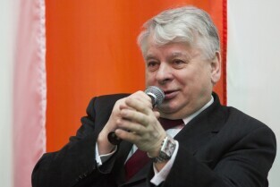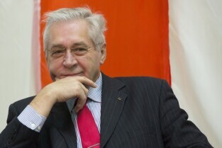 Gdańsk Osowa. Uroczystość nadania imienia Stefana Banacha Gimnazjum nr 33 i XXIV Liceum Ogólnokształcącemu, czyli Zespołowi Szkół Ogólnokształcących nr 2. Nz. Marszałek Senatu RP Bogdan Borusewicz