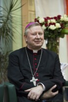 Gdańsk Osowa. Uroczystość nadania imienia Stefana Banacha Gimnazjum nr 33 i XXIV Liceum Ogólnokształcącemu, czyli Zespołowi Szkół Ogólnokształcących nr 2. Nz. Biskup pomocniczy Archidiecezji Gdańskiej Wiesław Szlachetka