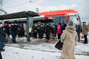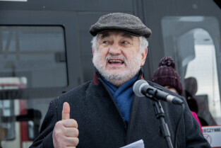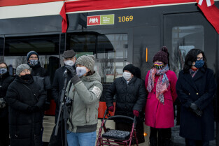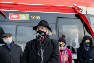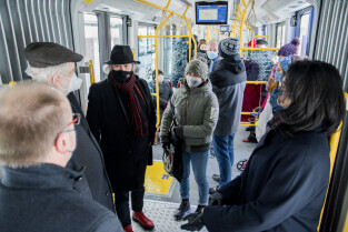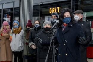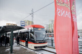 Gdańsk, ul. Witosa. Uroczystość nadania tramwajowi imienia Zbigniewa Jujki. W wydarzeniu wzięli udział m. in. Aleksandra Dulkiewicz, prezydent Gdańska oraz członkowie rodziny patrona. Sylwetkę Zbigniewa Jujki przedstawił prof. Józef Borzyszkowski