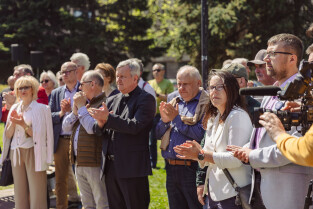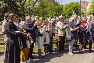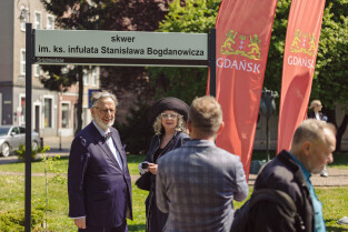 Gdańsk. Uroczystość otwarcia Skweru księdza Stanisława Bogdanowicza