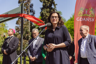 Gdańsk. Uroczystość otwarcia Skweru księdza Stanisława Bogdanowicza. Nz. przewodnicząca Rady Miasta Gdańsk Agnieszka Owczarczak