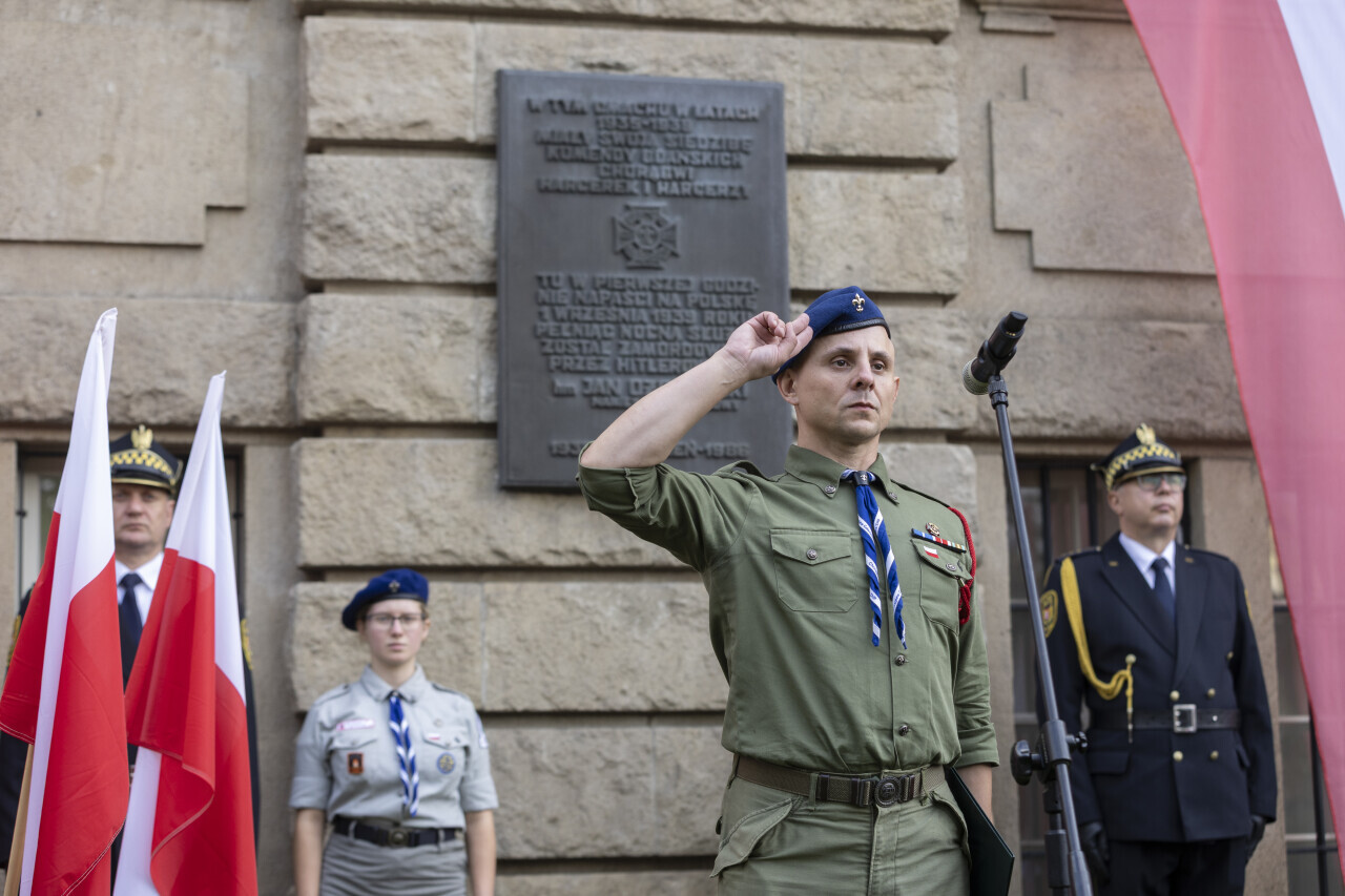 Uroczystość pod tablicą upamiętniającą harcmistrza Jana Ożdżyńskiego