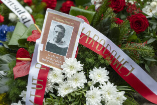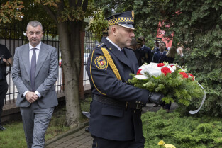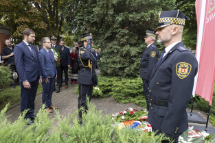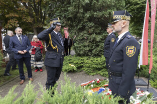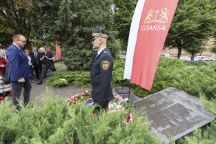 Uroczystość przy pomniku-tablicy upamiętniającej nauczycieli polskich z Wolnego Miasta Gdańska