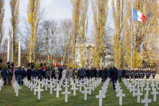 Uroczystość upamiętniająca 104. rocznicę zawieszenia broni w 1918 roku. Gdańsk Suchanino, Cmentarz Żołnierzy Francuskich
