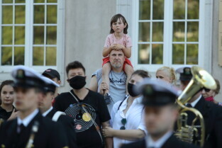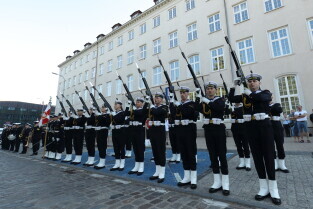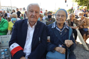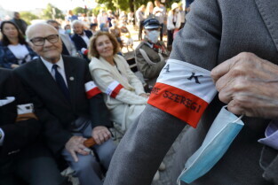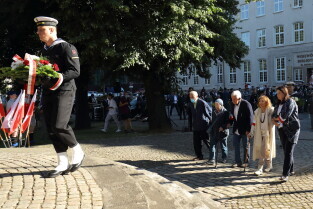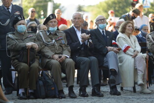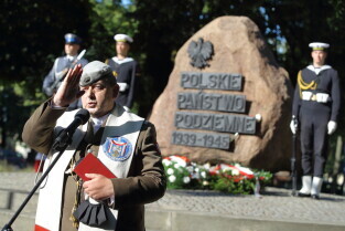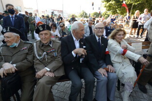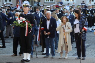 Gdańsk, pomnik Polskiego Państwa Podziemnego. Uroczystość upamiętniająca 76. rocznicę wybuchu Powstania Warszawskiego.