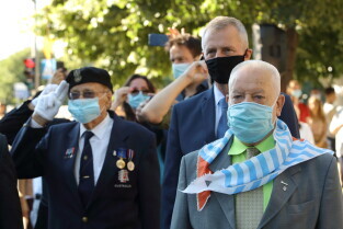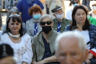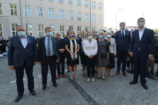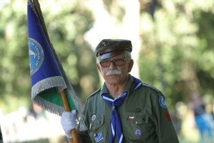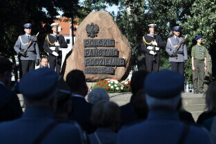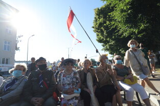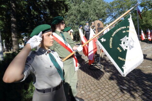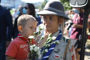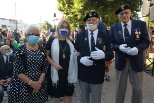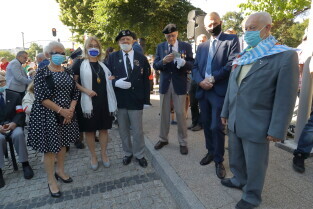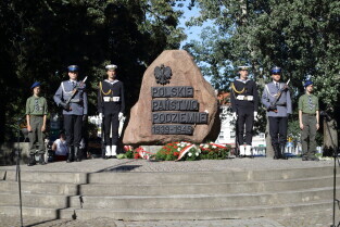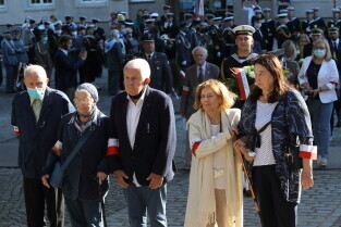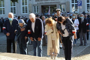 Gdańsk, pomnik Polskiego Państwa Podziemnego. Uroczystość upamiętniająca 76. rocznicę wybuchu Powstania Waeszawskiego.