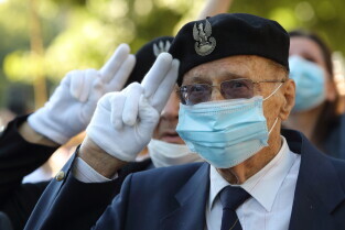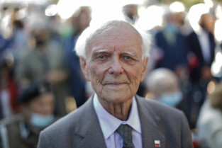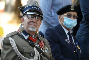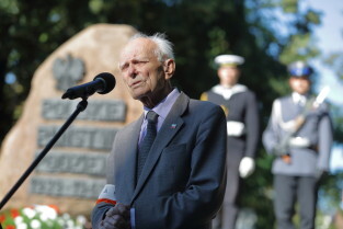 Gdańsk, pomnik Polskiego Państwa Podziemnego. Uroczystość upamiętniająca 76. rocznicę wybuchu Powstania Warszawskiego. Nz. Prof. Jerzy Grzywacz - Żołnierz Armii Krajowej, Powstaniec Warszawski pseudonim "Tapir".