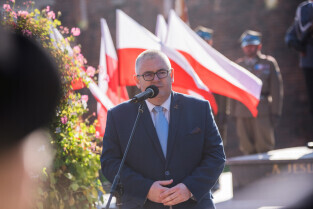 Gdańsk, Pomnik "TYM, CO ZA POLSKOŚĆ GDAŃSKA" Uroczystość upamiętniająca czyn bojowy Polskich Sił Zbrojnych na froncie wschodnim. Nz. Piotr Kowalczuk zastępca prezydenta Gdańska ds. polityki społecznej