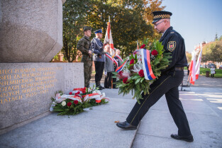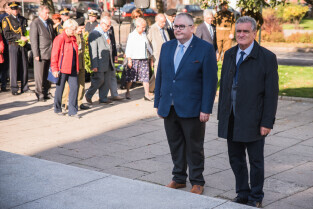 Gdańsk, Pomnik "TYM, CO ZA POLSKOŚĆ GDAŃSKA" Uroczystość upamiętniająca czyn bojowy Polskich Sił Zbrojnych na froncie wschodnim. Nz. Piotr Kowalczuk zastępca prezydenta Gdańska ds. polityki społecznej i Przewodniczący Rady Miasta Gdańska Bogdan Oleszek