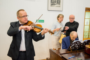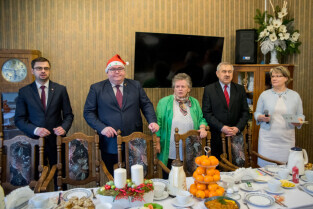 Gdańsk, Dom Pomocy Społecznej, ul. Polanki. Uroczystość wigilijna dla osób starszych. Nz. (od lewej) radny Mariusz Andrzejczak, Z-ca Prezydenta Gdańska Piotr Kowalczuk, radna Teresa Wasilewska, radny Jacek Teodorczyk i Dyrektor Danuta Podogrodzka-Oleńko