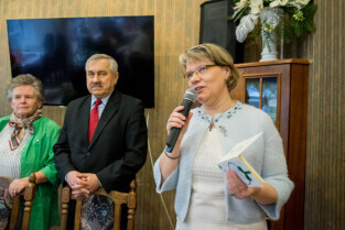 Gdańsk, Dom Pomocy Społecznej, ul. Polanki. Uroczystość wigilijna dla osób starszych. Nz. Dyrektor Danuta Podogrodzka-Oleńko