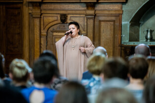 Gdańsk, Dwór Artusa. Uroczystość z okazji Dnia Pracownika Socjalnego. Nz. Katarzyna Kobiela