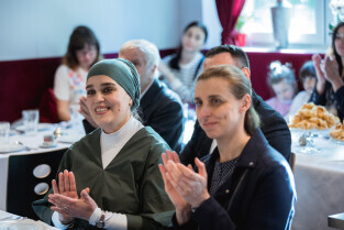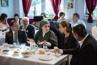 Gdańsk, ul. Wyspiańskiego. Uroczystość z okazji Dnia deportacji krymskich Tatarów. Nz. Susanna İzzetdinova i Monika Chabior zastępczyni prezydent Gdańska