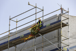 Uroczystość zawieszenia wiechy nowej hali wystawienniczej w kompleksie AMBEREXPO