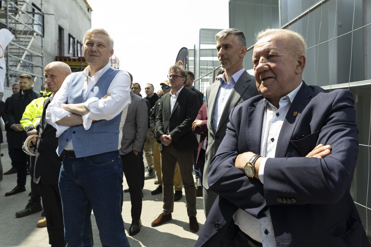 Uroczystość zawieszenia wiechy nowej hali wystawienniczej w kompleksie AMBEREXPO