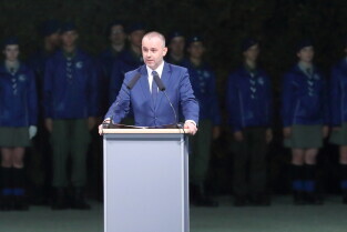 Gdańsk, Westerplatte. Uroczystości 80. rocznicy wybuchu II Wojny Światowej. Nz. Mariusz Błaszczak-Minister Obrony Narodowej.