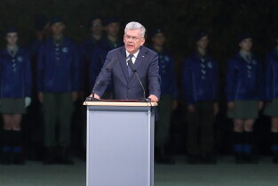 Gdańsk, Westerplatte. Uroczystości 80. rocznicy wybuchu II Wojny Światowej. Nz. Stanisław Karczewski-Marszałek Senatu.