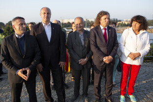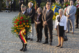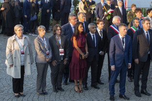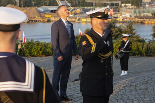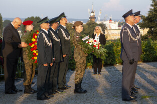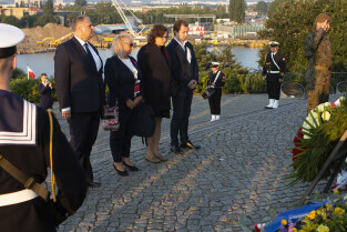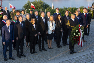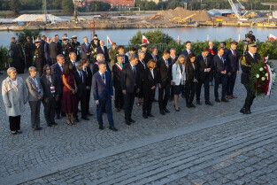 Gdańsk, Westerplatte. Uroczystości 80. rocznicy wybuchu II Wojny Światowej. Nz. trzeci od lewej marszałek woj. pomorskiego Mieczysław Struk