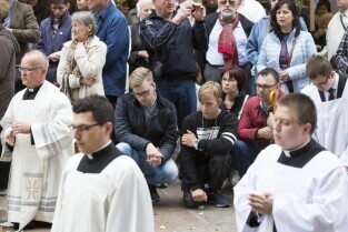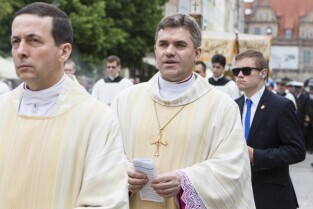 Gdańsk, Główne i Stare Miasto. Procesja eucharystyczna Najświętszego Ciała i Krwi Chrystusa (Boże Ciało). Nz. Biskup pomocniczy Archidiecezji Gdańskiej Zbigniew Zieliński