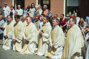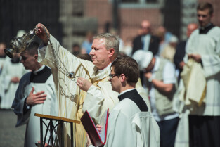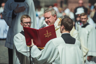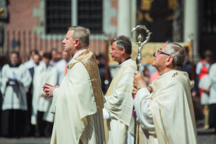 Gdańsk, Główne i Stare Miasto. Procesja eucharystyczna Najświętszego Ciała i Krwi Chrystusa (Boże Ciało). Nz. Biskup pomocniczy Archidiecezji Gdańskiej Zbigniew Zieliński
