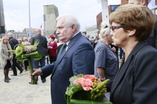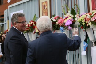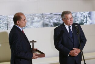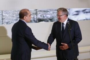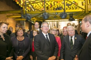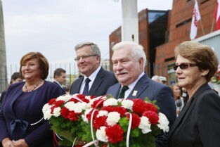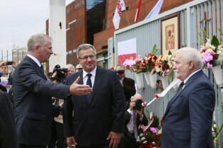 Gdańsk, Europejskie Centrum Solidarności. Uroczystości jubileuszowe w 34 rocznicę podpisania Porozumień Sierpniowych. Wziął w nich udział m.in. prezydent RP Bronisław Komorowski, pierwszy demokratycznie wybrany prezydent RP Lech Wałęsa i prezydent Gdańska Paweł Adamowicz.