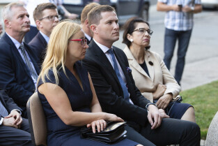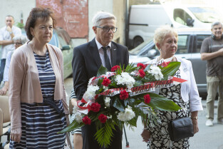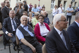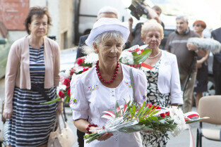 Uroczystości pod dawną Victoriaschule. Hołd dla polskich ofiar z września 1939 roku. Gdańsk, ul. Kładki. Nz. Przewodnicząca Rady Miasta Gdańska Agnieszka Owczarczak, Z-ca Prezydenta Gdańska Piotr Grzelak, Radna Miasta Gdańska Teresa Wasilewska