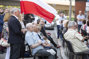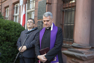Uroczystości pod dawną Victoriaschule. Hołd dla polskich ofiar z września 1939 roku. Gdańsk, ul. Kładki