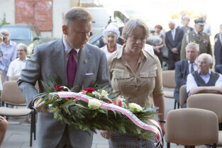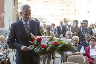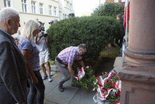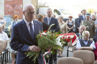 Uroczystości pod dawną Victoriaschule. Hołd dla polskich ofiar z września 1939 roku. Gdańsk, ul. Kładki. Nz. Przewodniczący Rady Miasta Gdańska Agnieszka Owczarczak, Z-ca Prezydenta Gdańska Piotr Grzelak