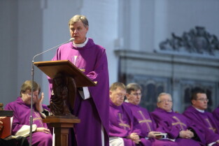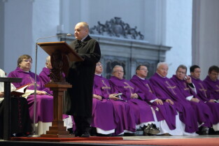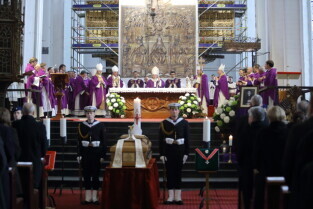 Gdańsk, Bazylika Mariacka. Uroczystości pogrzebowe Ks. Infułata Stanisława Bogdanowicza.