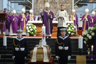 Gdańsk, Bazylika Mariacka. Uroczystości pogrzebowe Ks. Infułata Stanisława Bogdanowicza.