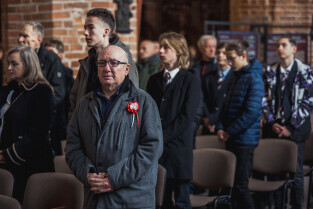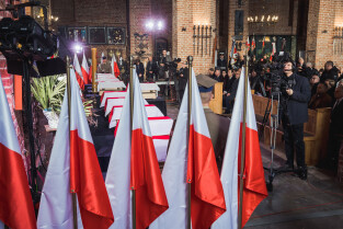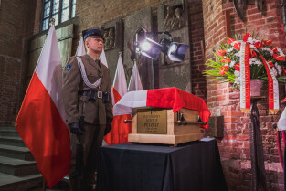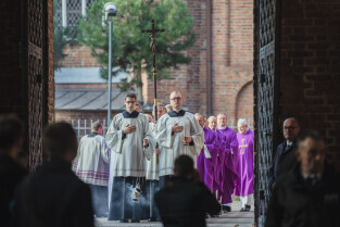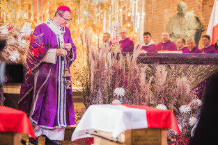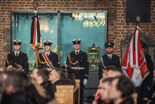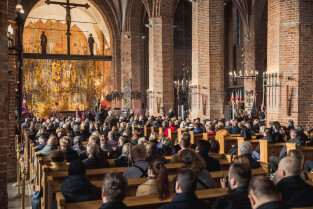Gdańsk. Uroczystości pogrzebowe Obrońców Westerplatte. Uroczysta msza święta w bazylice św. Brygidy w Gdańsku