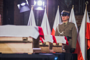 Gdańsk. Uroczystości pogrzebowe Obrońców Westerplatte.