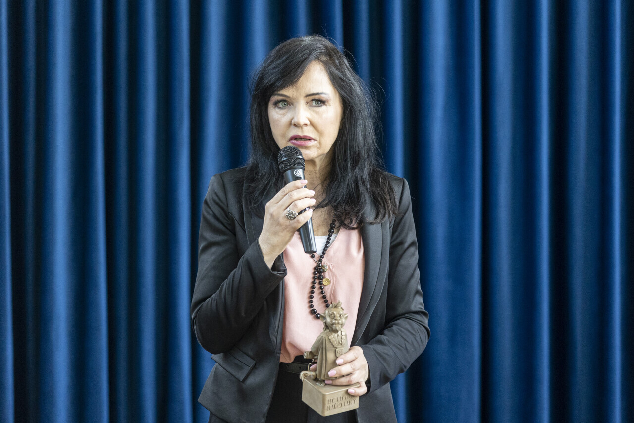 Gdańsk. W Szkole Podstawowej nr 69, odbył się uroczysty apel z okazji 60-lecia placówki. W uroczystościach udział wzięli między innymi: Senator Sławomir Rybicki, prywatnie absolwent tej szkoły, radne Agnieszka Bartków i Żaneta Geryk oraz Pomorski Kurator Oświaty Grzegorz Kryger. Nz. Przemawia radna Żaneta Geryk