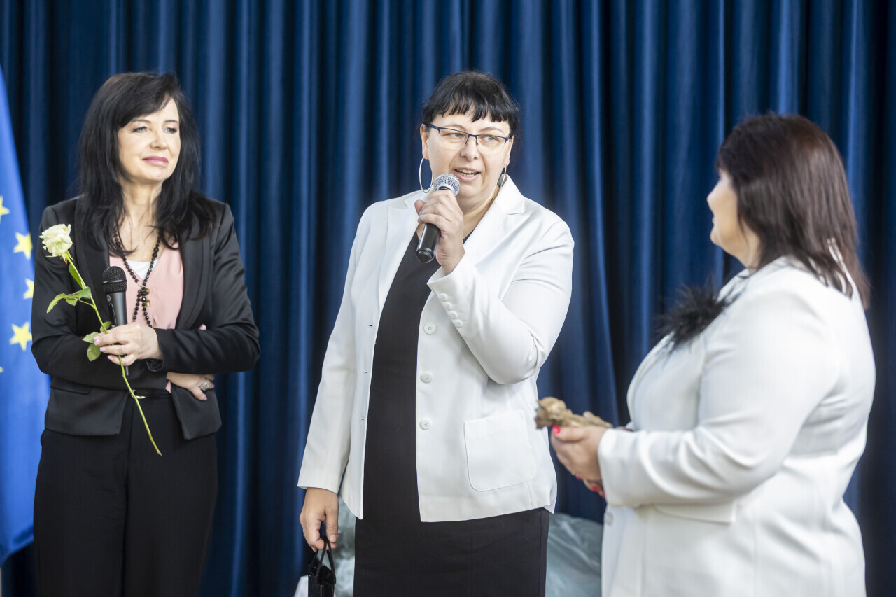 Gdańsk. W Szkole Podstawowej nr 69, odbył się uroczysty apel z okazji 60-lecia placówki. W uroczystościach udział wzięli między innymi: Senator Sławomir Rybicki, prywatnie absolwent tej szkoły, radne Agnieszka Bartków i Żaneta Geryk oraz Pomorski Kurator Oświaty Grzegorz Kryger. Nz. Na scenie radne gdańska, Żaneta Geryk i Agnieszka Bartków