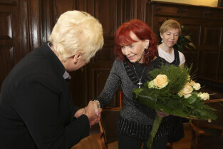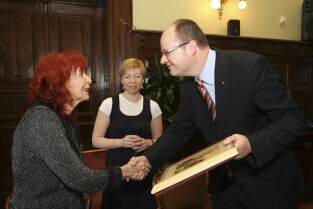 Ursula Foester z organizacji "Polen Hilfe" kończy swoją działaność. Z tej okazji otrzymała podziękowanie z rąk Prezydenta Gdańska Pawła Adamowicza i w-ce Marszałka Pomorskiego Krystyny Pajury