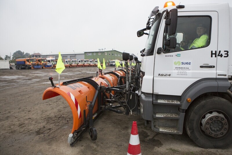 Gdańsk, baza Sita Północ Sp. z o.o. przy ul. Równej. Prezentacja służb odpowiedzialnych w mieście za utrzymanie zimowe